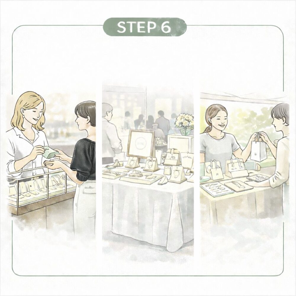 ジュエリーブランド立ち上げは、最初からすべてを決めて進めるものではなく、思い描くジュエリーを形にしていく過程や、出展などの経験を重ねながら、少しずつ方向性を定めていくことも大切です。