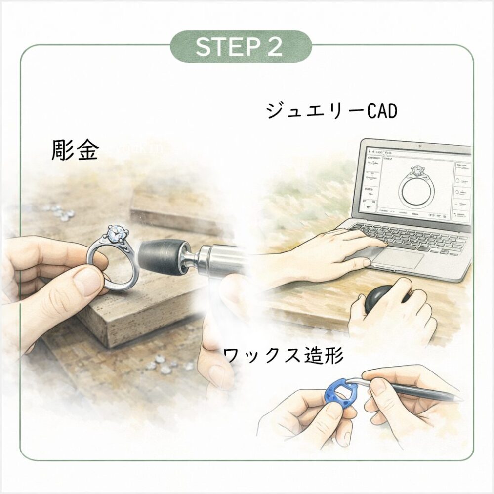 彫金、CAD、WAXなど、どの技法が合うかは、表現したい内容や将来の進め方によって変わります。
