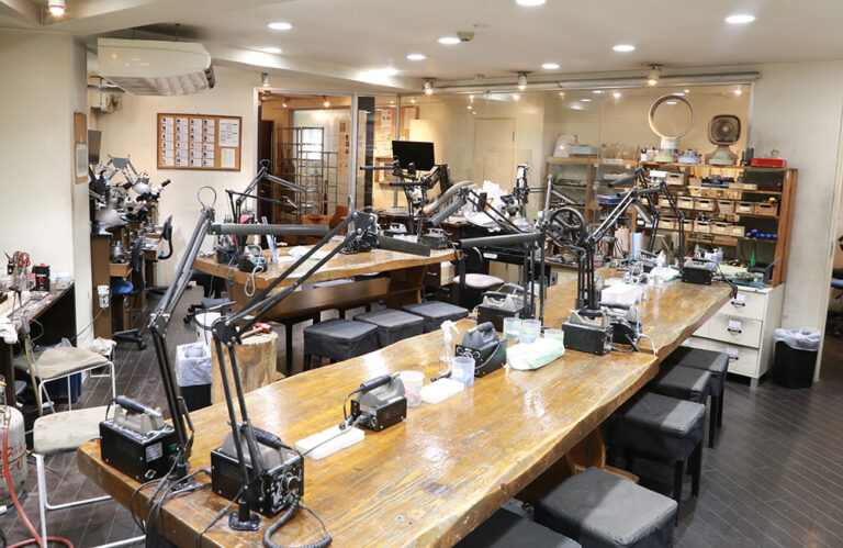 また、ラヴァーグはメーカー直営の工房を併設したジュエリースクールです。 彫金体験でも、プロが実際に使っている工房や設備の雰囲気を感じながら制作できます。